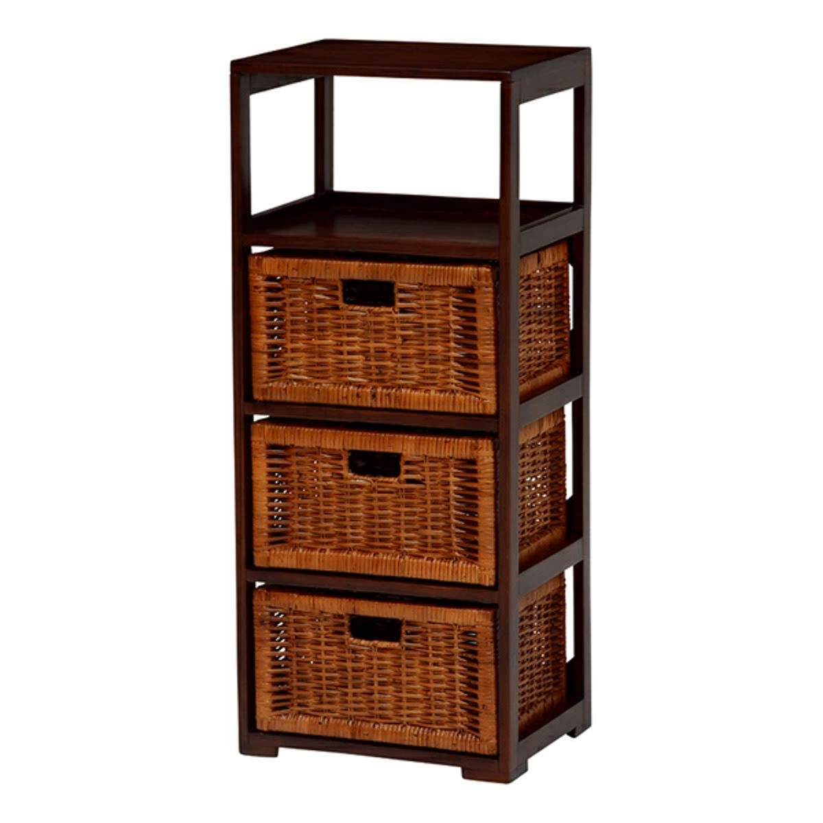 ランドリーチェスト 4段 籐カゴ付 マホガニー材 アジアンテイスト 幅37cm ( ラタン チェスト アジアン家具 天板付き 収納 籐 天然木 家具 アジアン ラタン製 ラタン家具 収納ラック 衣類収納 おしゃれ )