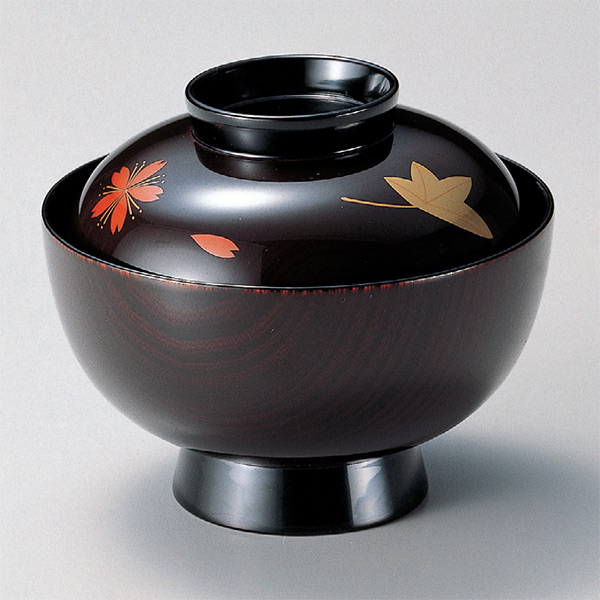 吸い物椀 木製 4.2寸 溜漆塗 春秋筏 磨蒔絵 吸物椀 お椀 食器 漆塗 ( 椀 汁椀 味噌汁椀 吸物 吸い物 本漆塗 味噌汁 蒔絵 蓋付き 漆 塗り 漆塗り 漆器 和食器 和風 懐石 懐石料理 飲食店 料亭 旅館 )