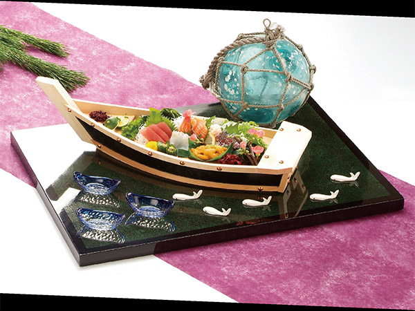 盛器 木製 尺7 舟形 大和黒舟 皿 食器 刺身 お造り 舟盛 食器 盛り皿 ( お皿 大漁盛り 器 うつわ 和食器 舟盛り 盛る 魚 懐石 懐石料理 飲食店 料亭 旅館 大皿 )