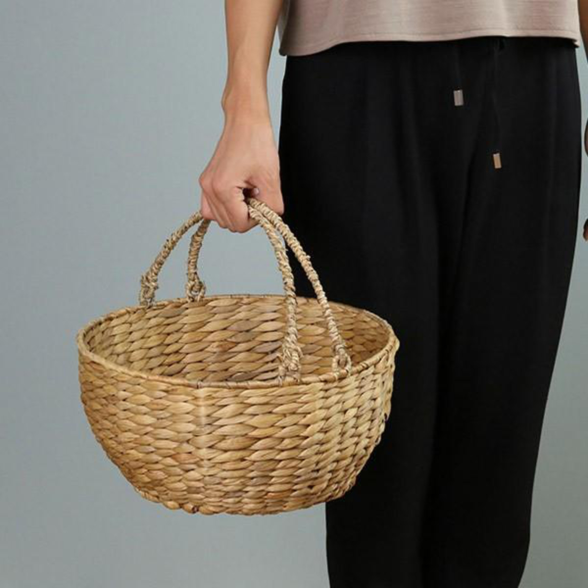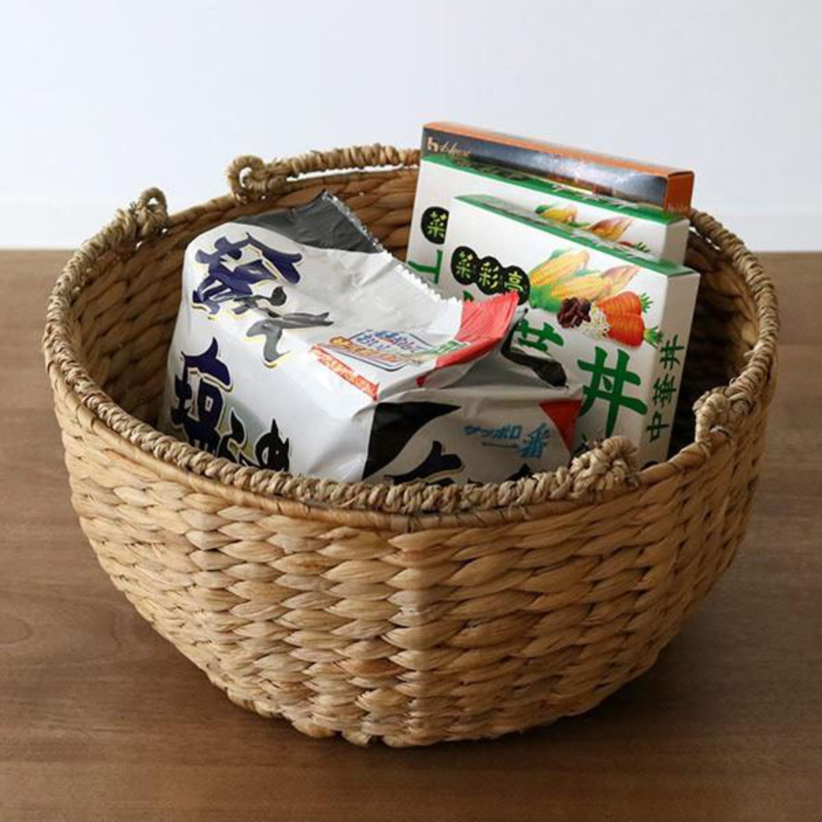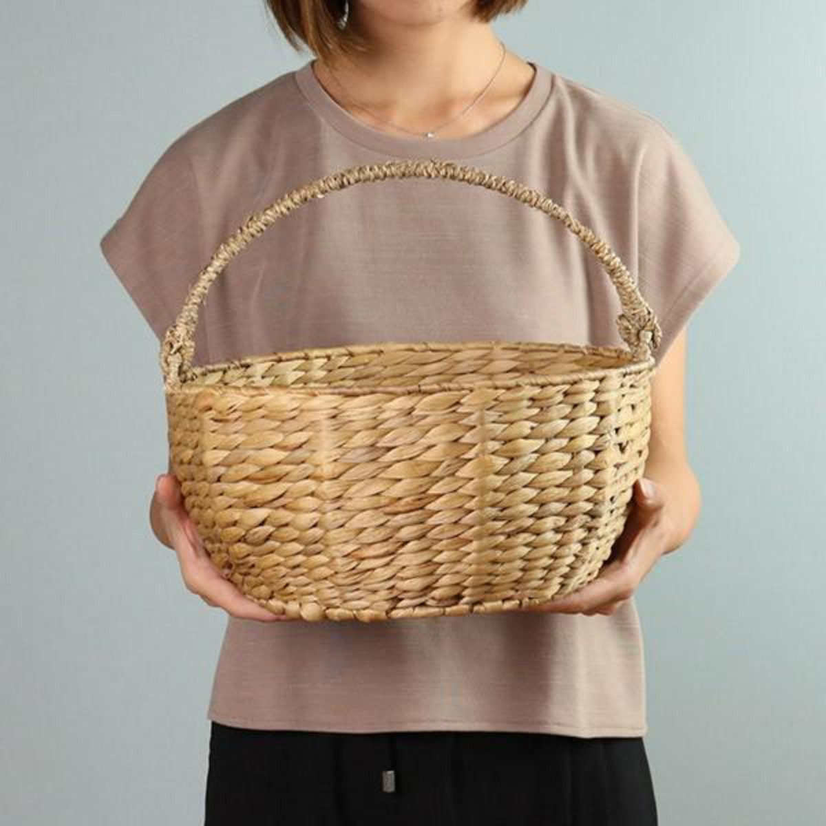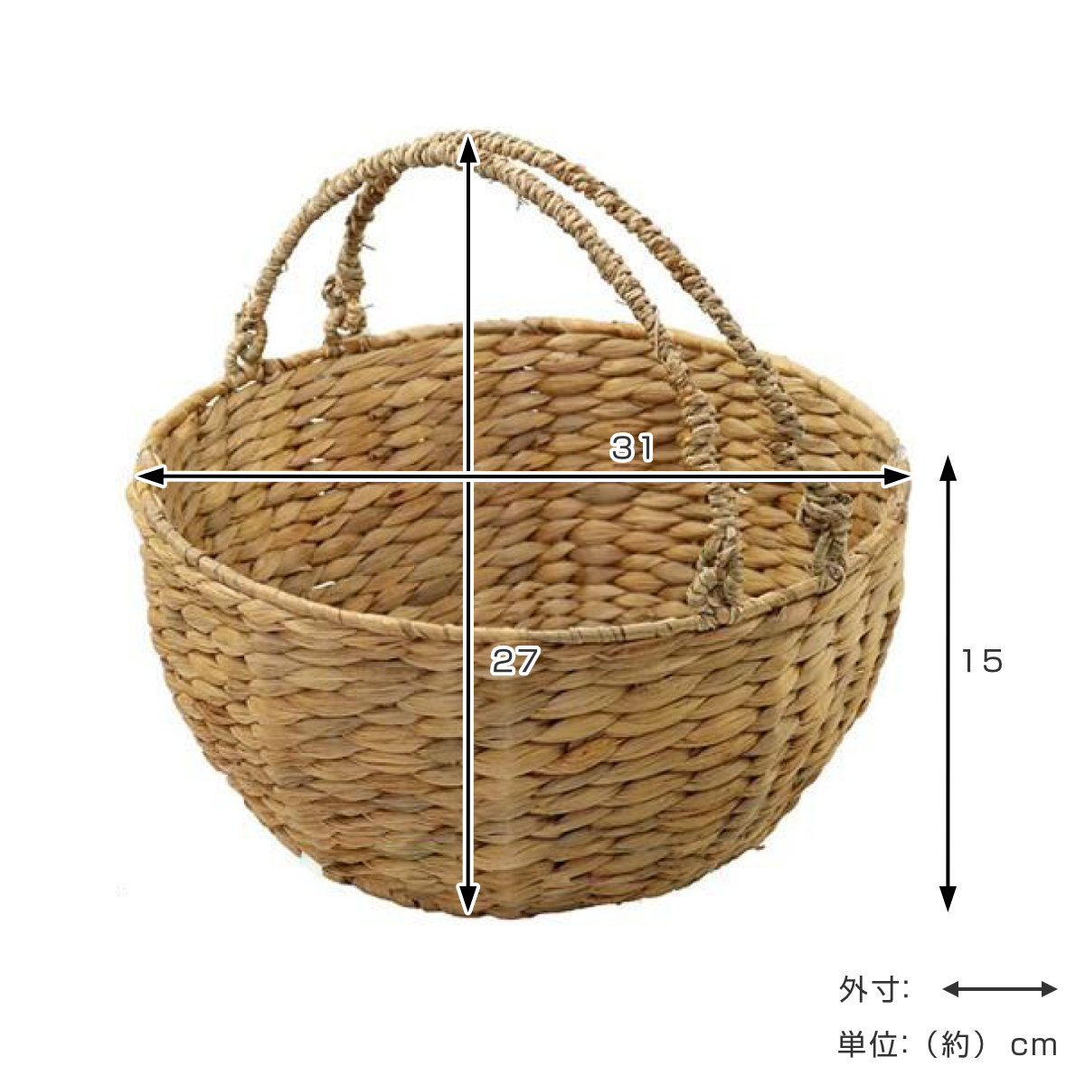 バスケット 持ち手付き 約 直径31×高さ15cm 小物入れ ウォーターヒヤシンス ( 収納ボックス かご カゴ 収納ケース 小物収納 天然素材 手編み 収納カゴ ケース 丸 卓上 卓上収納 ハンドメイド リビング キッチン おしゃれ )