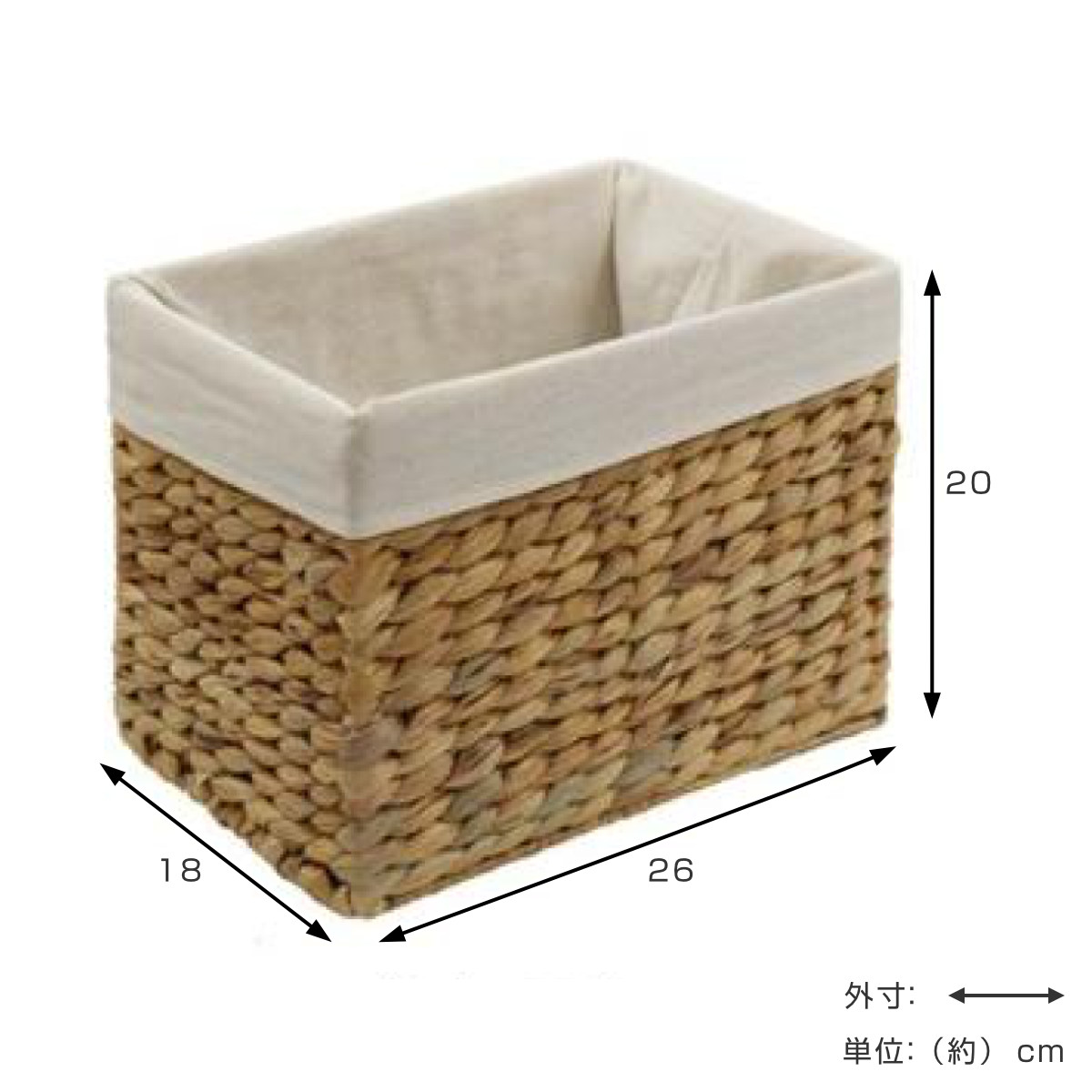 収納ボックス バスケット 内布 約 幅18×奥行26×高さ20cm かご ウォーターヒヤシンス ( 収納ケース 小物収納 収納 卓上 小物 カゴ 積み重ね スタッキング 卓上収納 インナーボックス 棚上収納 布付き 自然素材 ナチュラル 籠 ) 【ダークブラウン】