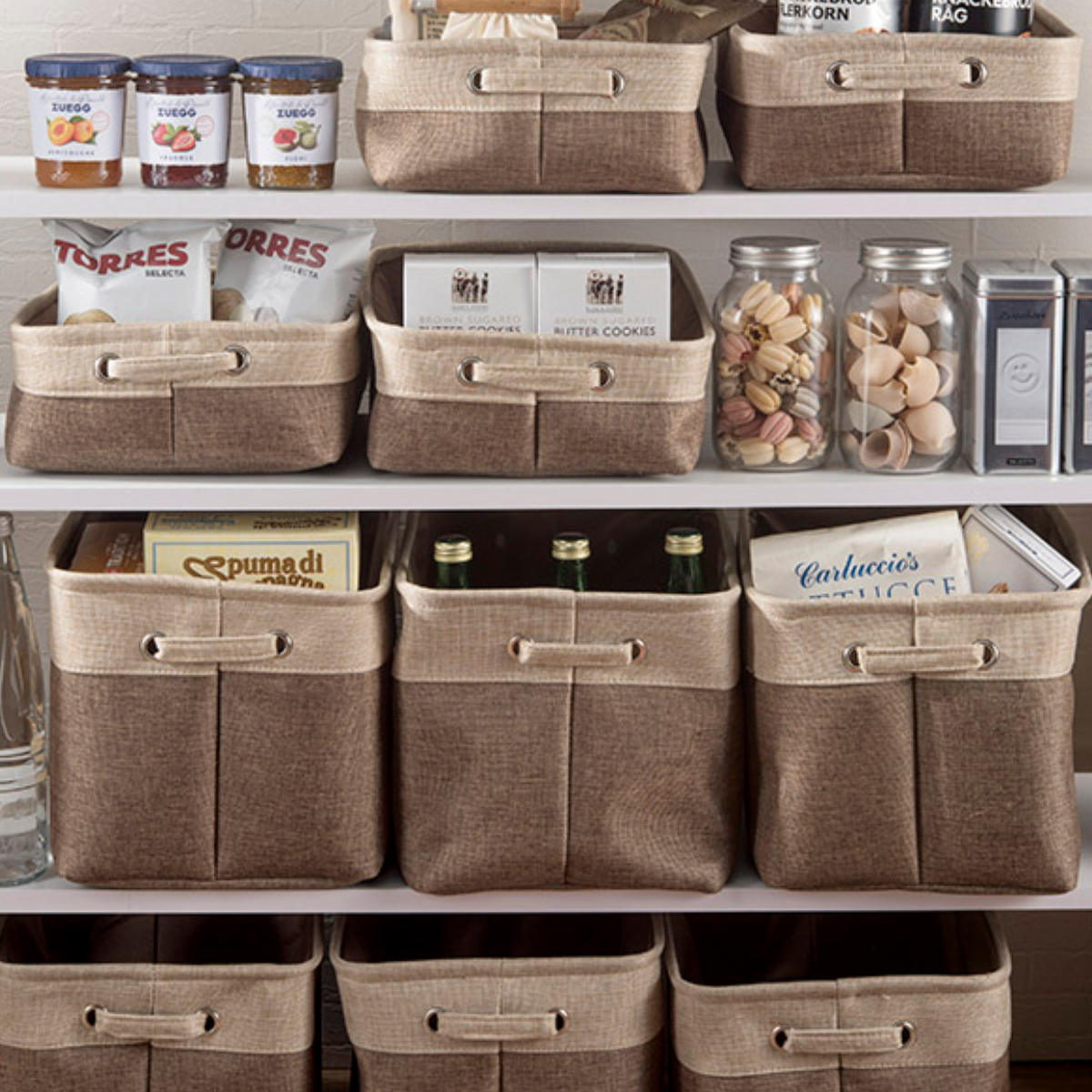 食品ストックを大きさや種類ごとに分けて整理するのに便利です。シリーズで並べて使用すれば、統一感のあるナチュラルな空間を演出します。