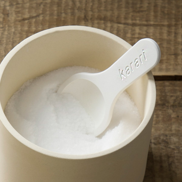スプーンと乾燥剤の1つ2役で、固まりやすい塩などの湿気を吸い取り、サラサラに保ってくれる珪藻土スプーンです。塩以外にもコーヒー粉や茶葉など湿気を嫌う食品の保存にオススメです。自然素材なので、安心して使えるのもポイント。