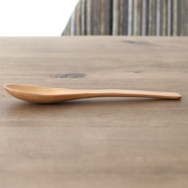 手にしっくり収まる使いやすいサイズです。持ち手の幅が広めなので、手にすると木の肌触りのよさ、心地よさを感じられるスプーンです。