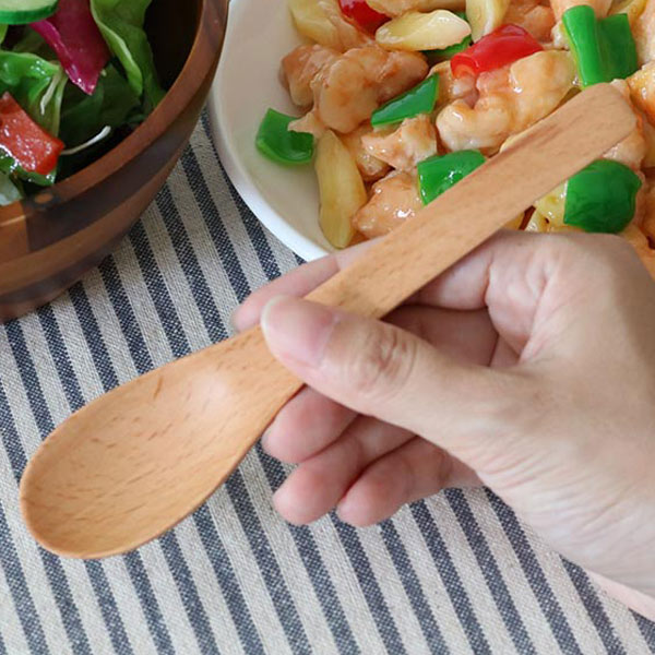 天然のブナの木でつくったスプーンです。ブナは肌ざわりがやさしく、木目が美しいのが特徴です。