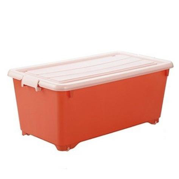 収納ボックス ふた付き 同色2個セット 約 幅40×奥行74×高さ31cm フォーシービビッド ( おもちゃ 収納 収納ケース おもちゃ箱 2個セット 子ども部屋 深型 衣類 衣装ケース スタッキング 積み重ね キャスター付き 押入れ収納 ) 【オレンジ】