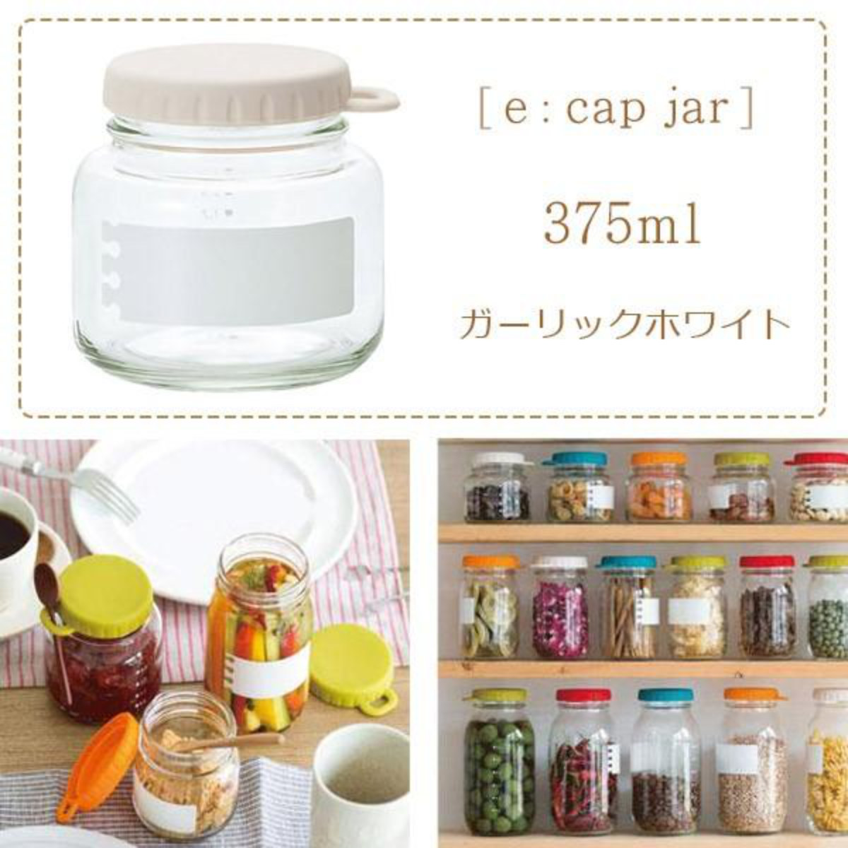 保存容器 e:Cap Jar 320 GW 375ml ガーリックホワイト ガラス製 4個セット ( 保存ビン ガラス保存容器 保存瓶 保存びん ガラス製保存容器 キャニスター ガラス容器 調味料容器 調味料入れ 蓋付き 目盛り付き イーキャップジャー )
