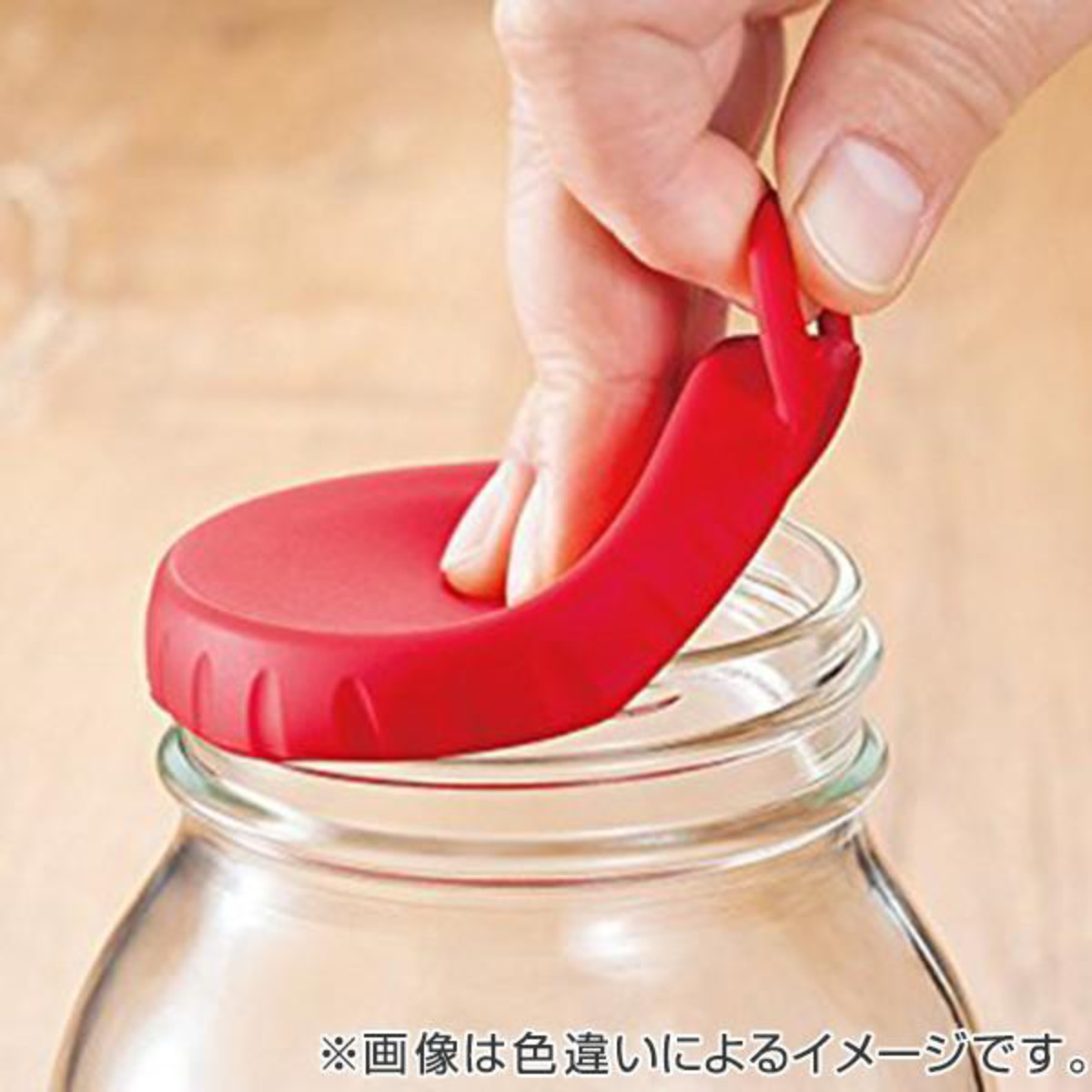はめる時は蓋をびん口に合わせて乗せて天面を手のひらで押すだけ。開けるときはつまみを指で掴むだけ。よく使う食材を入れてもスムーズに出し入れできます。