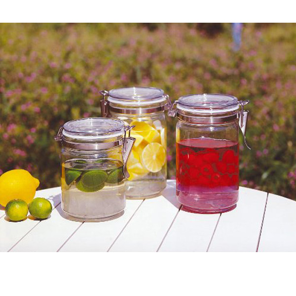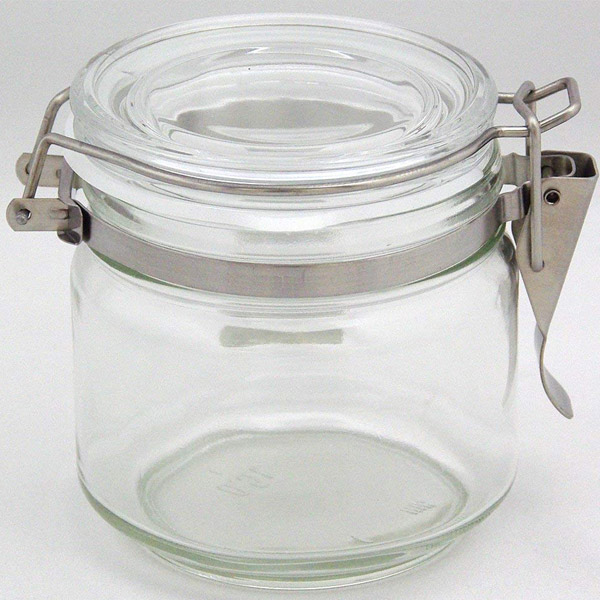 フタにパッキンが付いたガラス製の密閉保存容器です。