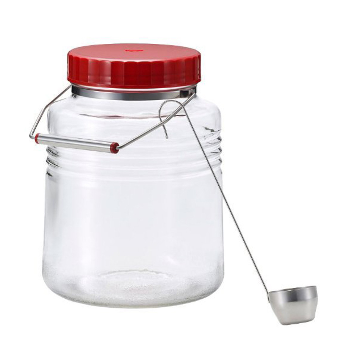 | 材質 | 本体:ガラス フタ及びハンドル樹脂部:ポリプロピレン パッキン部:ポリエチレン 金属部(ハンドル・ベルト・レードル):ステンレス |