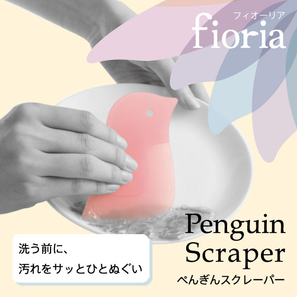 MARNA マーナ キッチンスクレーパー fioria フィオーリア ぺんぎんスクレーパー ( 食器用 お皿用 ヘラ スクレーパー 食器洗い クリーナー 汚れ落とし 弁当箱用 洗浄用品 掃除用具 掃除用品 掃除用 まな板用 キッチン清掃 ) 【 ブルー 】