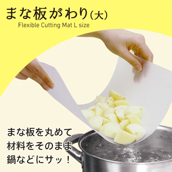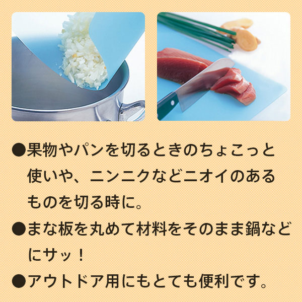 ●材料を切った後、まな板を丸めて材料をそのまま鍋に入れることができるので、こぼす心配がありません。