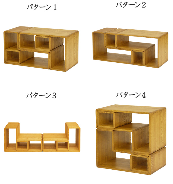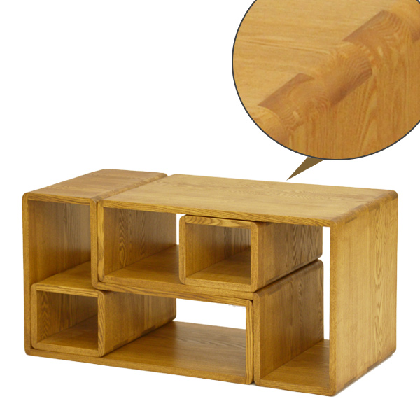 木目の美しいタモ無垢材ををロッキング構造でかたくて、丈夫に仕上げたL型のボックスフリーラック。2個1組のボックスの組み合わせは自由自在です。