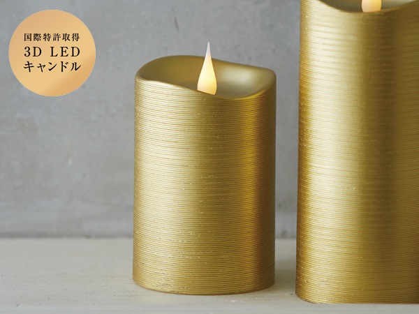 LEDキャンドル エンキンドルラインピラー S ゴールド ( キャンドルライト キャンドル ライト led ledライト ledキャンドルライト ゆれる 揺れる ゆらぎ 揺らぎ 電池式 乾電池 タイマー付き ろうそく ロウソク 蝋燭 )