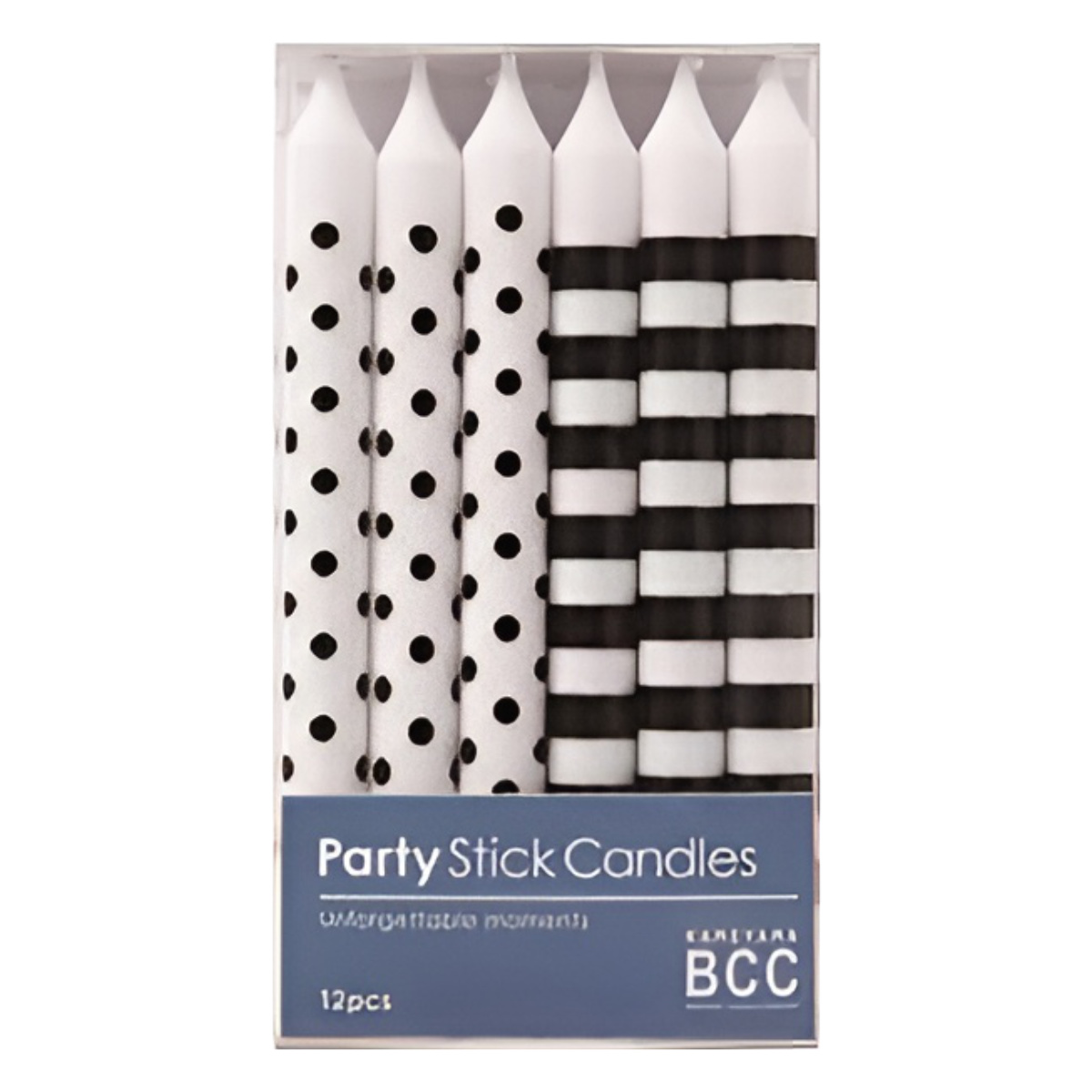 キャンドル パーティーキャンドル パーティースティックキャンドル ( ローソク ろうそく 蝋燭 ケーキ用 ケーキキャンドル シンプル 可愛い かわいい ボーダー ドット ピンク ブルー 青 黒 飾り付け 飾り ) 【ブラック】