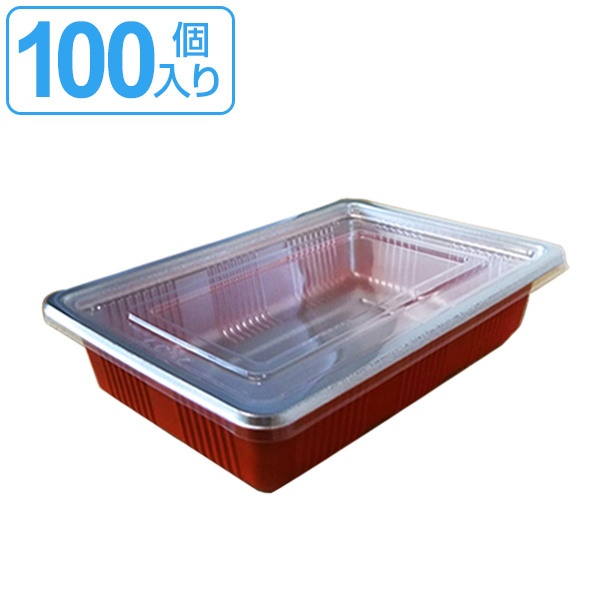 使い捨て容器 フード 赤底 7号 100個入 ( プラスチック容器 クリアパック パック 容器 使い捨て お弁当箱 ランチボックス 蓋付き 蓋 ふた 100個 入れ物 )