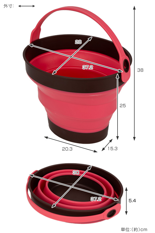 折りたたんでコンパクトになるバケツなので、車に積んでも場所をとりません。バーベキューやビーチで飲み物を冷やしたり、アウトドアで荷物の持ち運びもラクラク♪持ち手にホースを通せる穴が付いているので、洗車のときも便利に使えます。