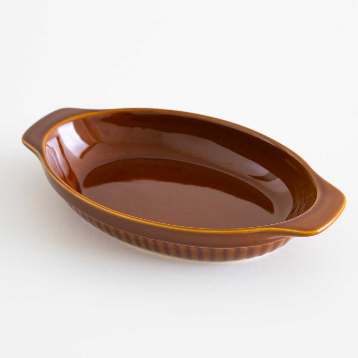 グラタンやドリアなどをオーブンから出してそのままテーブルに出せるグラタン皿です。ベーシックな色味でどんな食卓にも馴染みやすく、ほっこりとした温かみのある雰囲気を演出します。