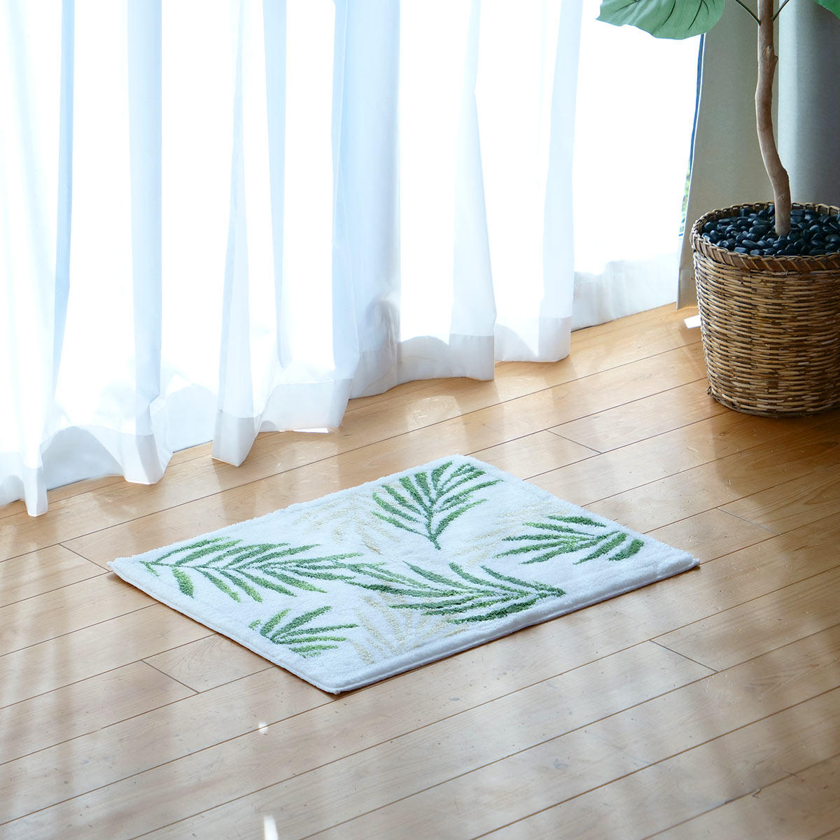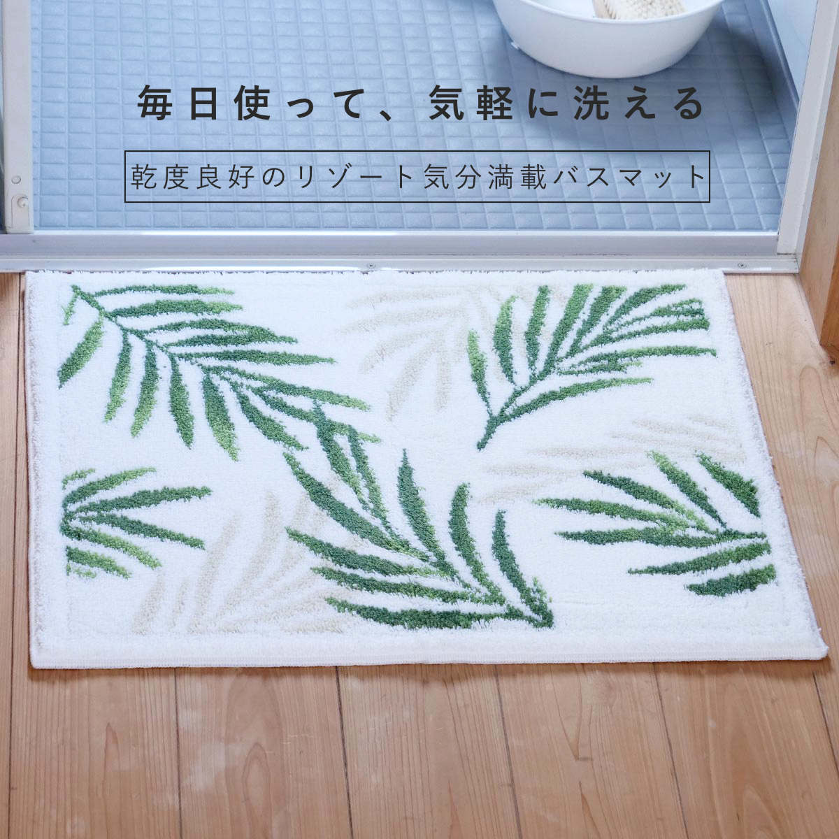 バスマット 乾度良好 パームリーフ 48×60cm ( 風呂マット お風呂マット 足ふきマット 足拭きマット 浴室マット 速乾 吸水 抗菌 防臭 滑り止め 日本製 縦48cm 横60cm バス 風呂 バスグッズ お風呂グッズ バス用品 お風呂用品 )