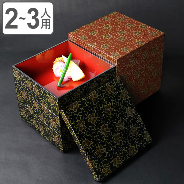 お重 5寸 三段重 黒 桜花 ( お重箱 三段 オードブル重 日本製 桜 おしゃれ 2500ml 2人 3人 おせち料理 3段 お弁当箱 弁当箱 和風 お正月 お節料理 3段お重 ピクニック ) 【 黒 】