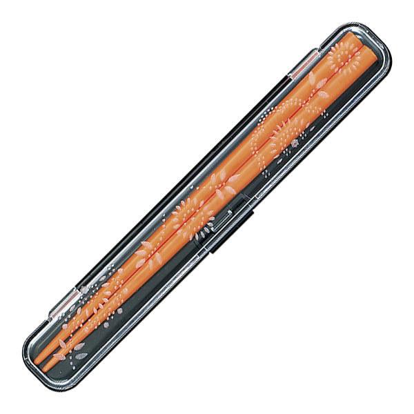 箸・箸箱セット Mon Mode 花 ( 箸 箸箱 花柄 お弁当グッズ 木製 弁当 天然木 箸ケース お花 木 ランチグッズ お弁当 ケース 弁当グッズ ランチ お花柄 お箸箱 はし お箸ケース 日本 ) 【 オレンジ 】