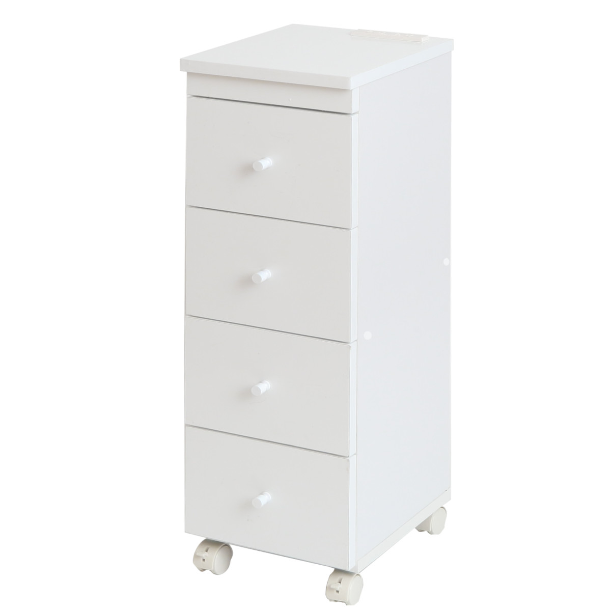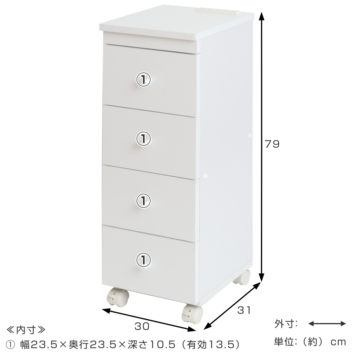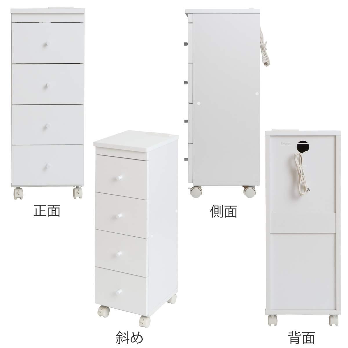 スリムチェスト 幅30cm 4段 キャスター 2口コンセント付 背面化粧 完成品 ( チェスト 引き出し スリム キャビネット 収納 ホワイト ワゴン 棚 ラック すきま収納 隙間 家具 キャスター付 コンセント付 )