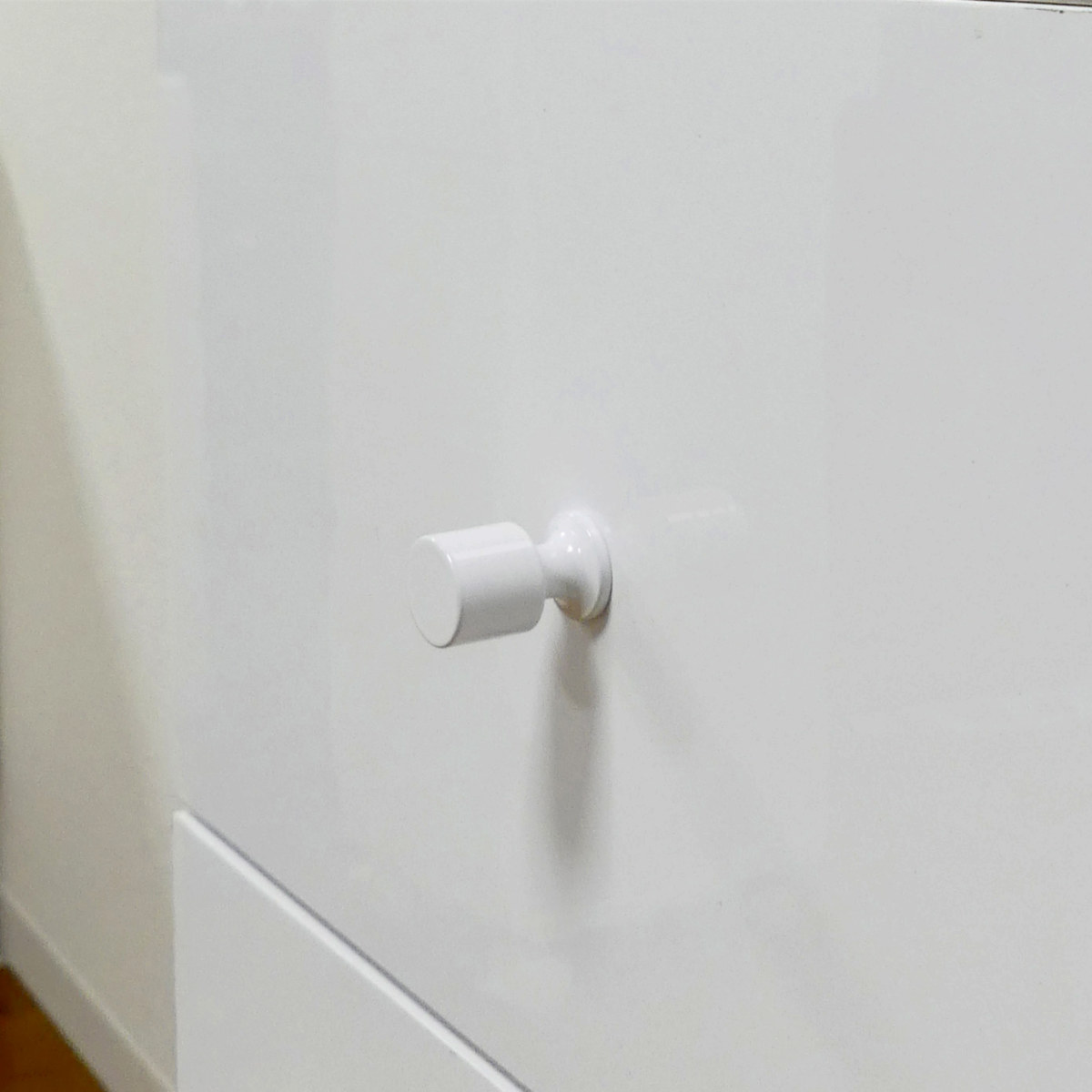 インテリアの邪魔をしない、シンプルな取っ手。本体と同じホワイトカラーで統一感を持たせました。