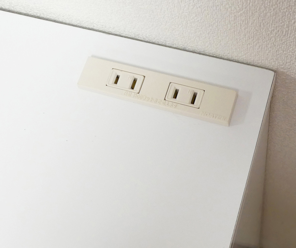 天板後方には2口コンセント付き(1500w)です。キッチンでは電気ケトルやコーヒーメーカーを、洗面所ではドライヤーやシェーバーなどを使う時に活躍します。