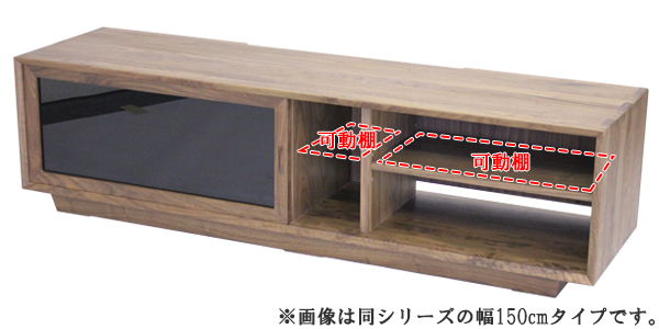 ●ガラス引き扉内のAV収納は、縦に仕切られており、用途に合わせて設置できる可動棚が2枚付いています。