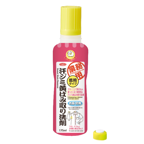 使い方は簡単!汗汚れに直接塗って、その後通常の洗濯方法で洗うだけです。たっぷり徳用タイプです。