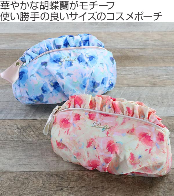 胡蝶蘭がちりばめられた華やかなデザインのポーチです。