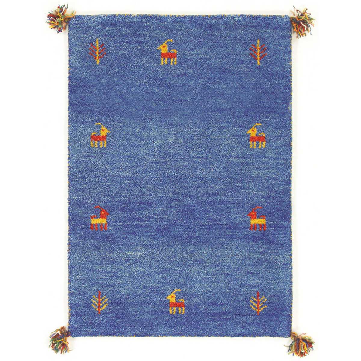 インテリアマット 60×90cm 手織り ギャッベ 屋内 玄関マット ( ラグマット ギャベ じゅうたん ウール 厚手 絨毯 保温効果 防音対策 快適 リビング 長方形 床暖房 四角 室内 GABBEH 70 120 ) 【ブルー】