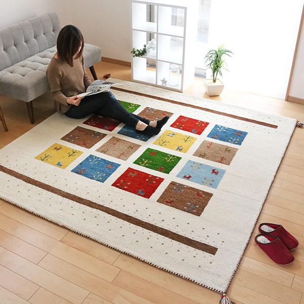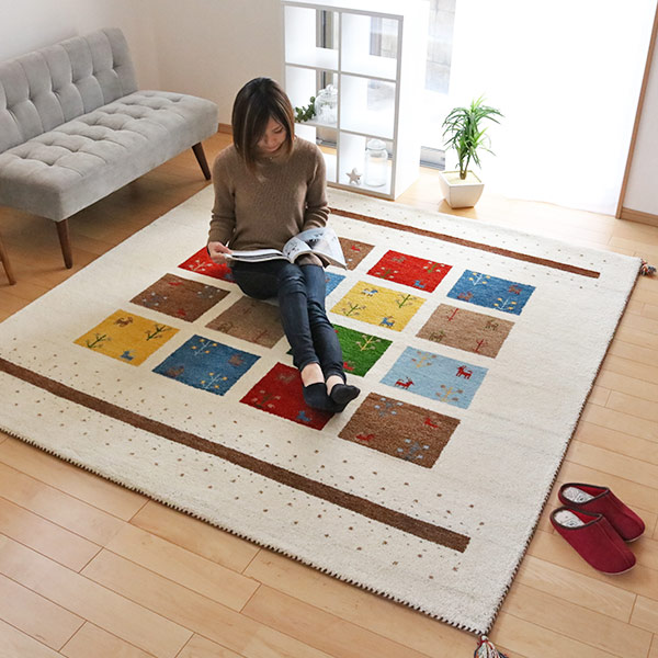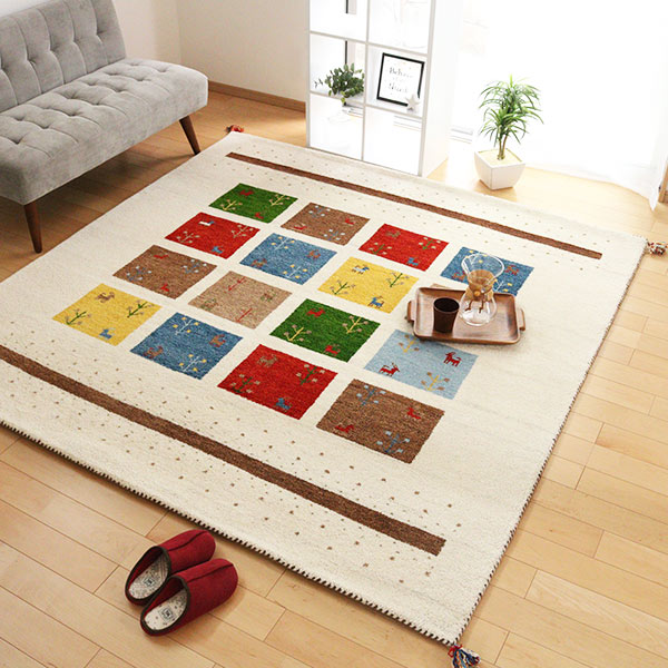 ラグ 2畳 200×200cm 手織り マット ラグマット ギャッベ D19 ( インテリアマット ギャベ じゅうたん ウール 厚手 絨毯 保温効果 防音対策 快適 リビング 長方形 床暖房 四角 室内 GABBEH 2帖 200 )
