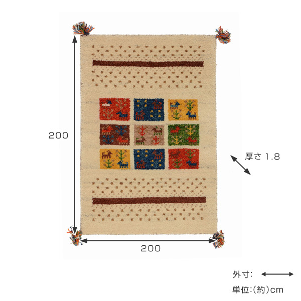 | サイズ | 約 横200×縦200(cm) 厚さ:約 1.8(cm) タッセルの長さ:約 7.5(cm) |
