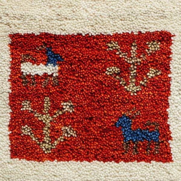 ギャッベは、イランの砂漠周辺に暮らすカシュガイ族の女性たちが手織りする草木染の絨毯です。彼女たちは、手紡ぎの羊毛を使い、日常の風景を即興で織り込むため、素朴な自然の色とデザインが特徴です。職人が一つ一つ手織りすることで、手触りが良く上質なギャッベが完成します。