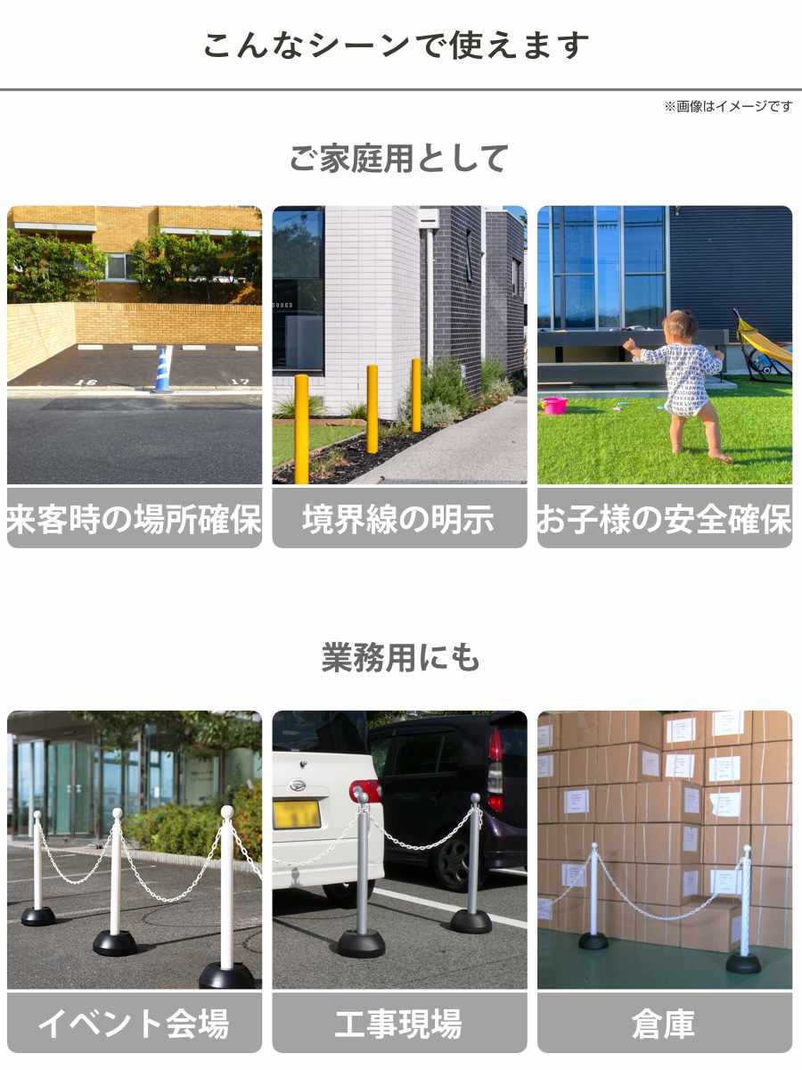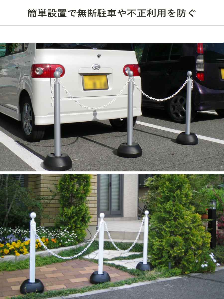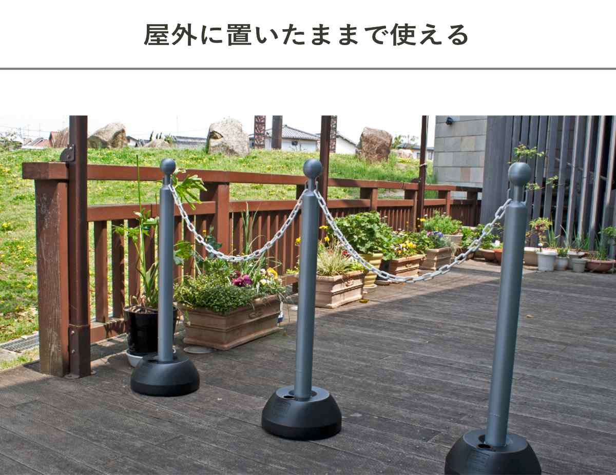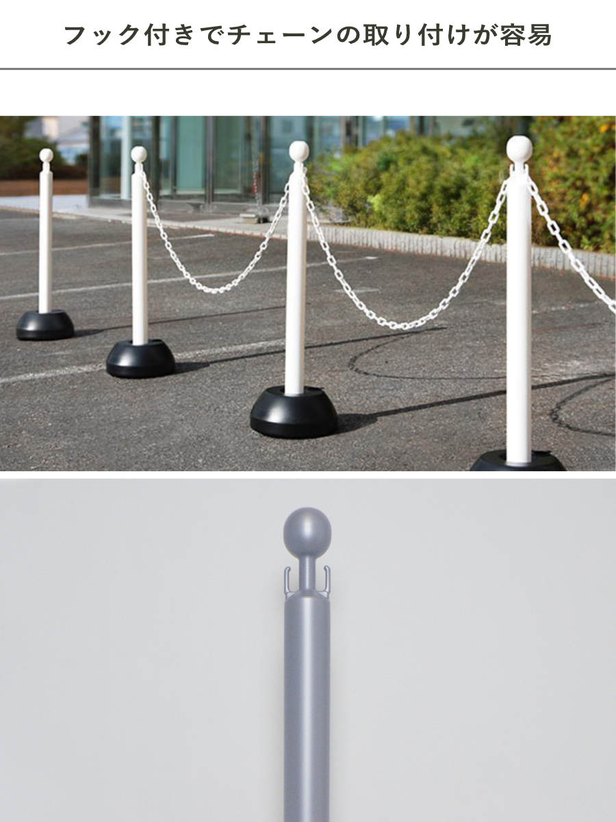 | 備考 | スタンド2本セットでの販売です。 ※チェーンは付属していません。 ホワイト、シルバー、イエローのポールにはブラックのポリ台が付きます。 ブラウンのポールのみ、ブラウンのポリ台となります。 |