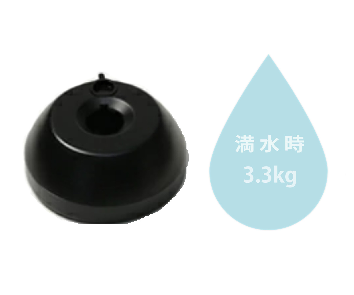 重しがいらない注水式の土台です。満水時重量は約3.3kgと安定感も抜群です。砂を入れるとさらに安定します。