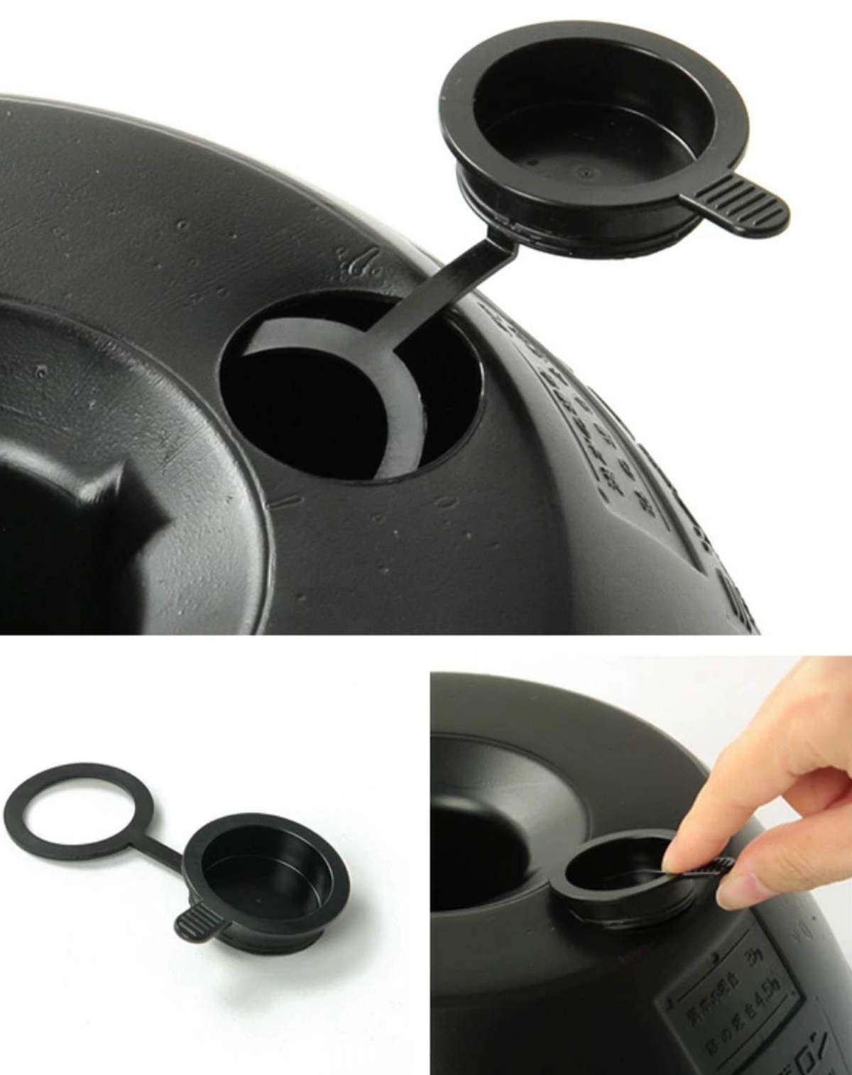 注入口のフタには、本体とつながる輪っかがついています。フタを外しても本体から離れないため、うっかり落としたり紛失したりする心配がありません。また、フタにはつまみが付いているので、開け閉めもラクに行えます。