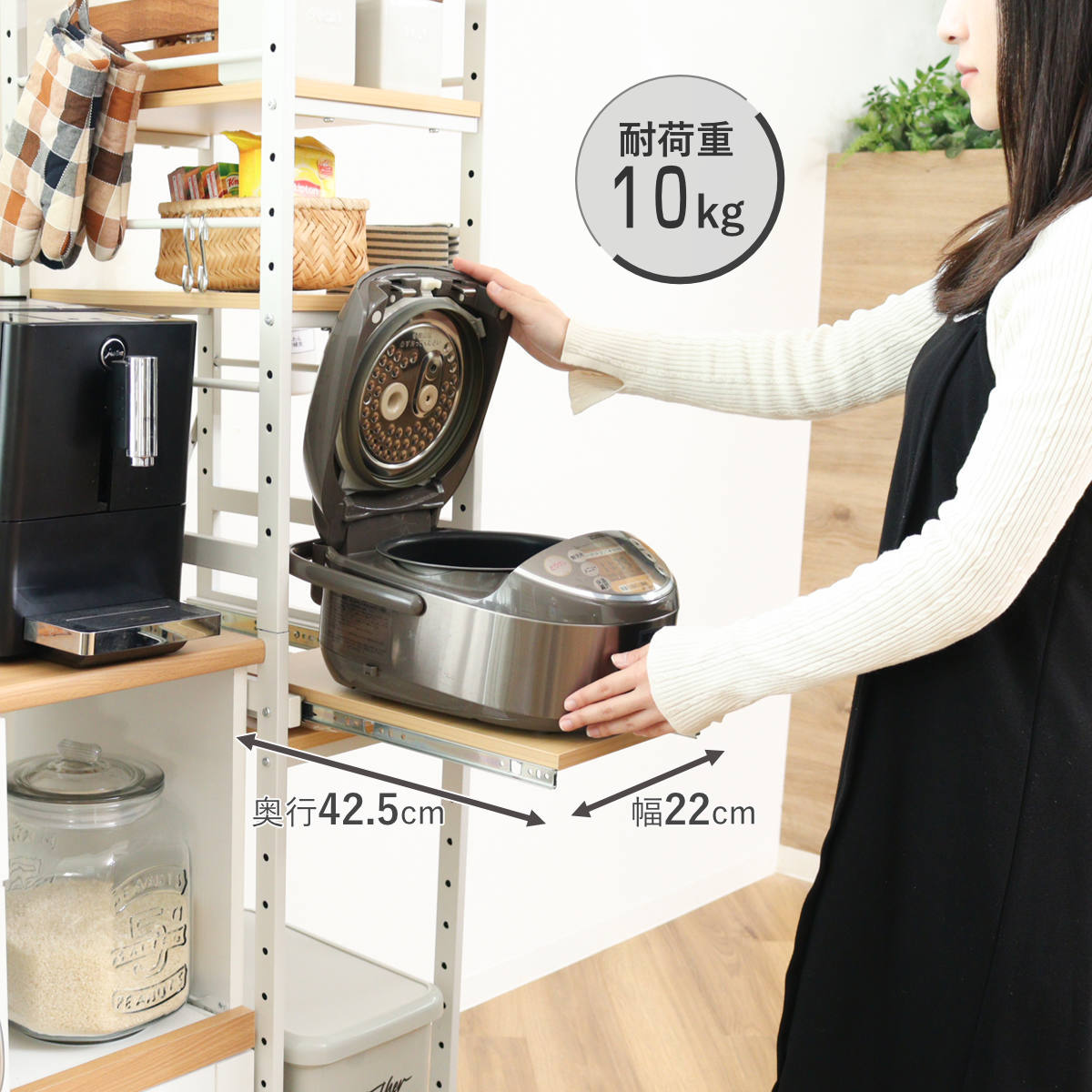 棚板1枚あたり耐荷重10kg