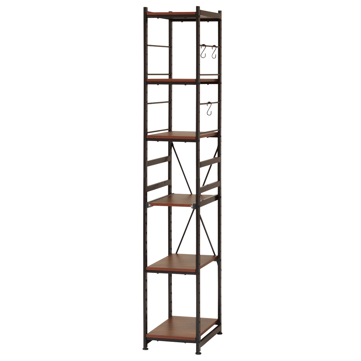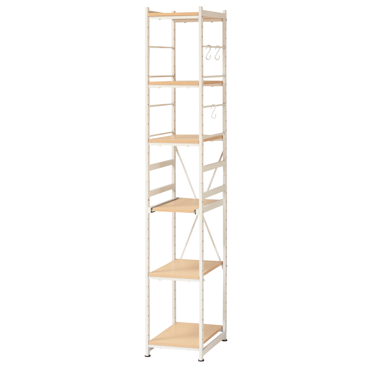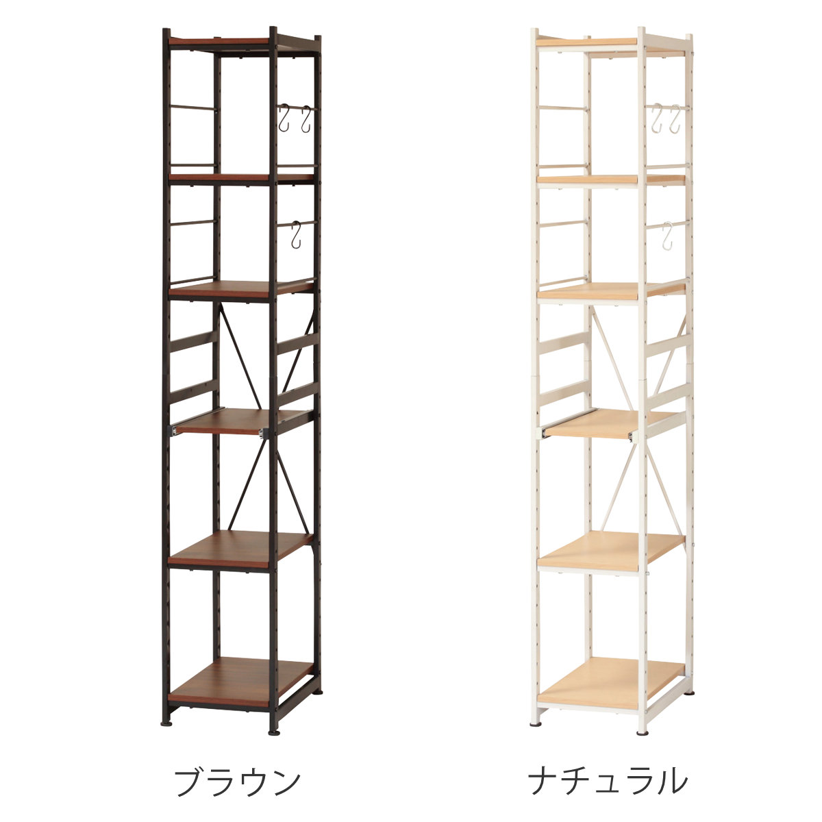 キッチンラック 幅30cm スライド棚 スチール S字フック3個付き SARA ( 食器棚 収納 家電ラック キッチンボード 収納ラック おしゃれ オープン収納 棚 スリム フック付き ブラウン ナチュラル ) 【ナチュラル】