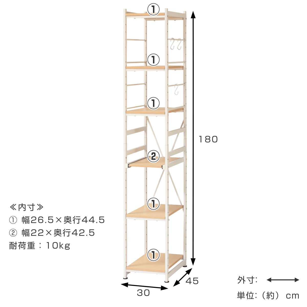 サイズ約 幅30×奥行45×高さ180(cm)