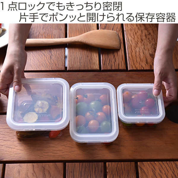 保存容器 片手でPON 500ml レクタングル 密閉 3個セット ( 食洗機対応 電子レンジ対応 冷凍庫対応 長方形 冷凍対応 密閉容器 密閉保存容器 食品保存 1点ロック プラスチック製 )