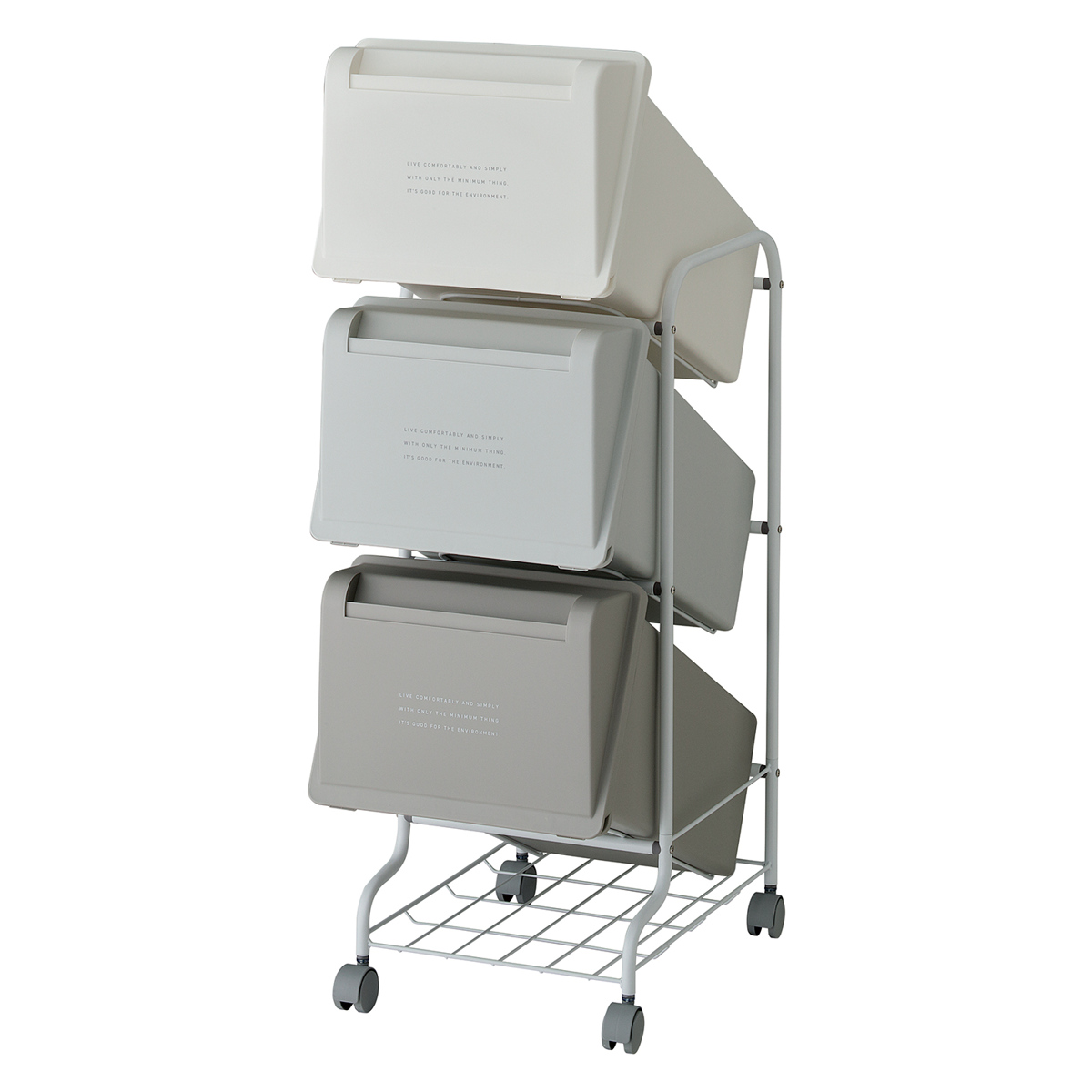 ゴミ箱を縦に並べることで省スペースでも使いやすい、ワゴン付きの分別式ゴミ箱です。ワゴン付きなので移動がしやすく、それぞれカラーの違う3色のゴミ箱がセットになっているので、ゴミの分別の目安にもなります。