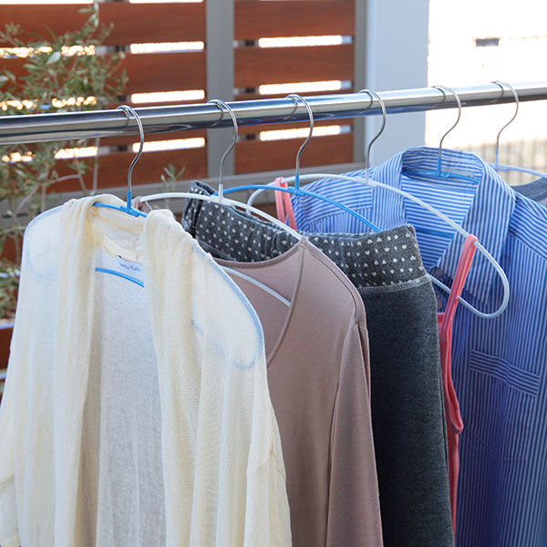 ノンスリップ加工が施されたハンガーです。ノンスリップハンガーは、外干しもできて、収納にも便利です。洗濯から収納までひとつのハンガーでできるので、洗濯物を畳む手間を省けます。