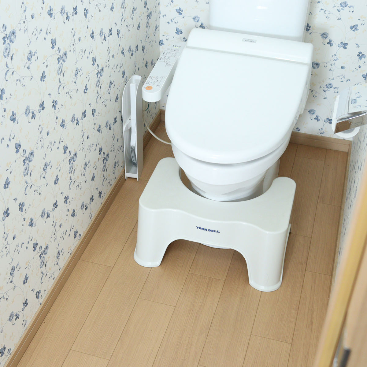 足を乗せるだけで和式トイレのような姿勢に。直腸がまっすぐ伸び、自然な腹圧がかかるので楽に排便できます。お子様だけでなく家族みんなでご使用いただけます。
