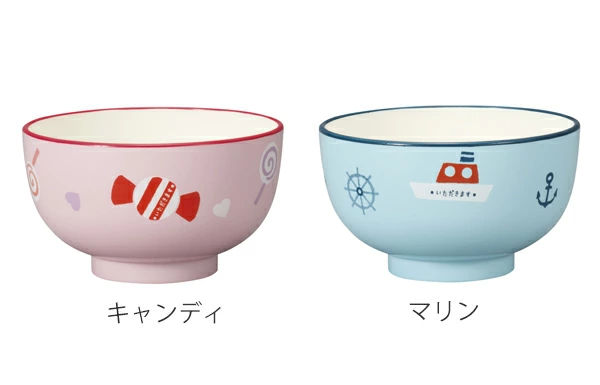 可愛いキャンディ柄やマリン柄で楽しいお食事タイムを演出します。軽くて割れにくいので安心です。シリーズで揃えるのもおすすめです。