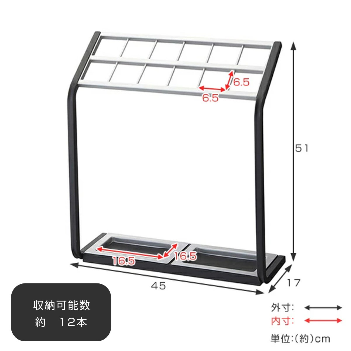 約12本の傘を収納できる大容量なので、見た目以上にすっきり収納できます。また、底面にはゴム製のマットが付いているので傘の先を傷めにくくお手入れも簡単です。