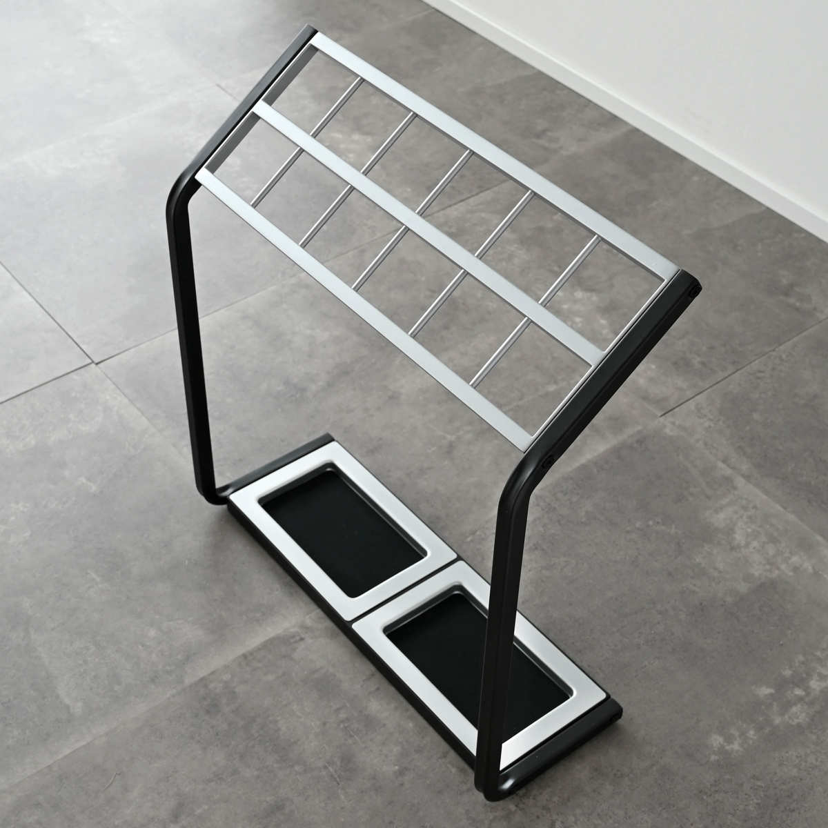 角型でスペースを有効的に使うことができる傘立てです。フレームだけのスタイリッシュなデザインなので取り間違いが起こりにくく、自分の傘をサッと取り出せます。