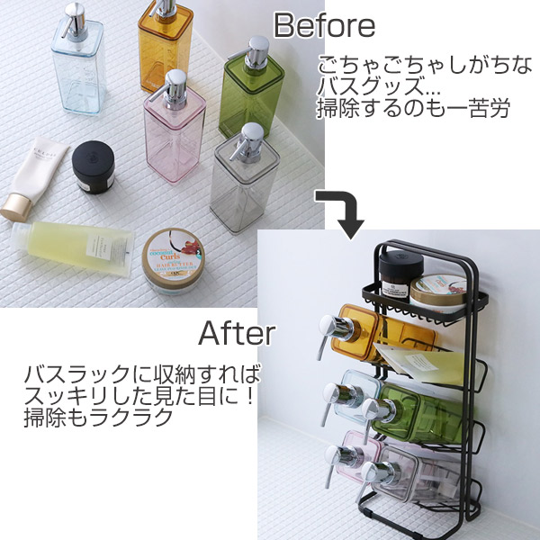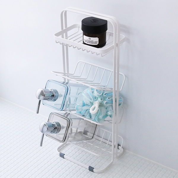 家族それぞれのバスグッズがごちゃっと置かれていませんか?大容量の4段タイプなら家族みんなのバスグッズをスッキリと収納できます。また、ディスペンサーなどの底の通気性が良くなるので、イヤなヌメリを撃退できます。お掃除の時も、ラックごと移動できるので便利です。