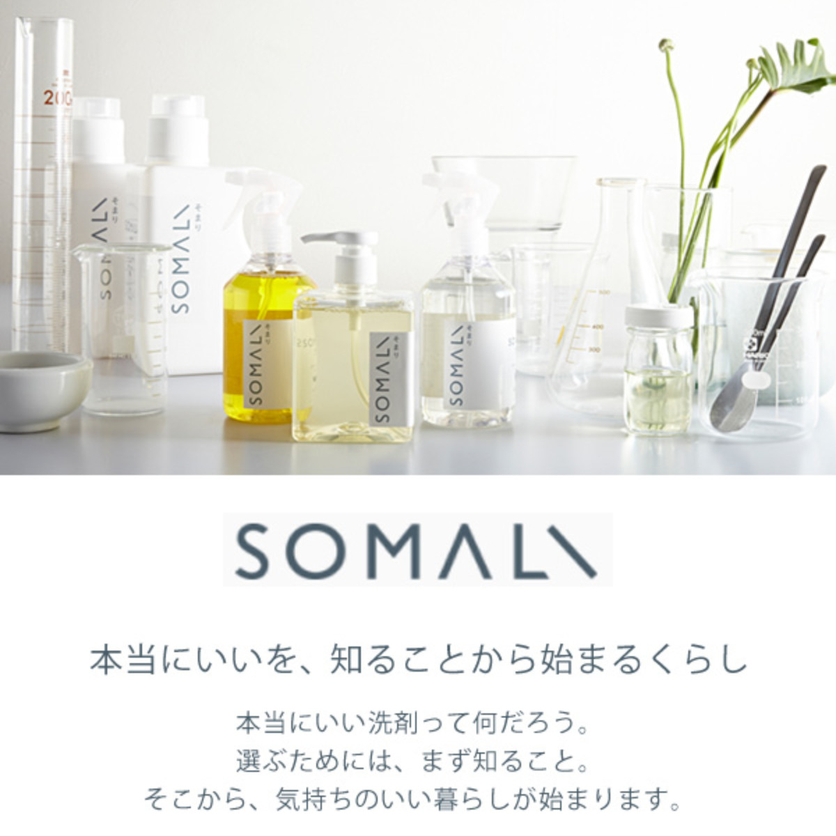 天然精油の100%植物オイルを使用しているため、肌にも優しく、ほのかな優しい香りに包まれます。また、天然素材にもこだわっているので季節によってほんの少し色の違いが出るのもSOMALIの特徴です。化学物質を加えれば、 効率よく性能を上げることができますが、「本当にいい」と言えるものを作るためにシンプルを突き詰めた結果、人にやさしく、環境にやさしいハウスケア用品ができました。